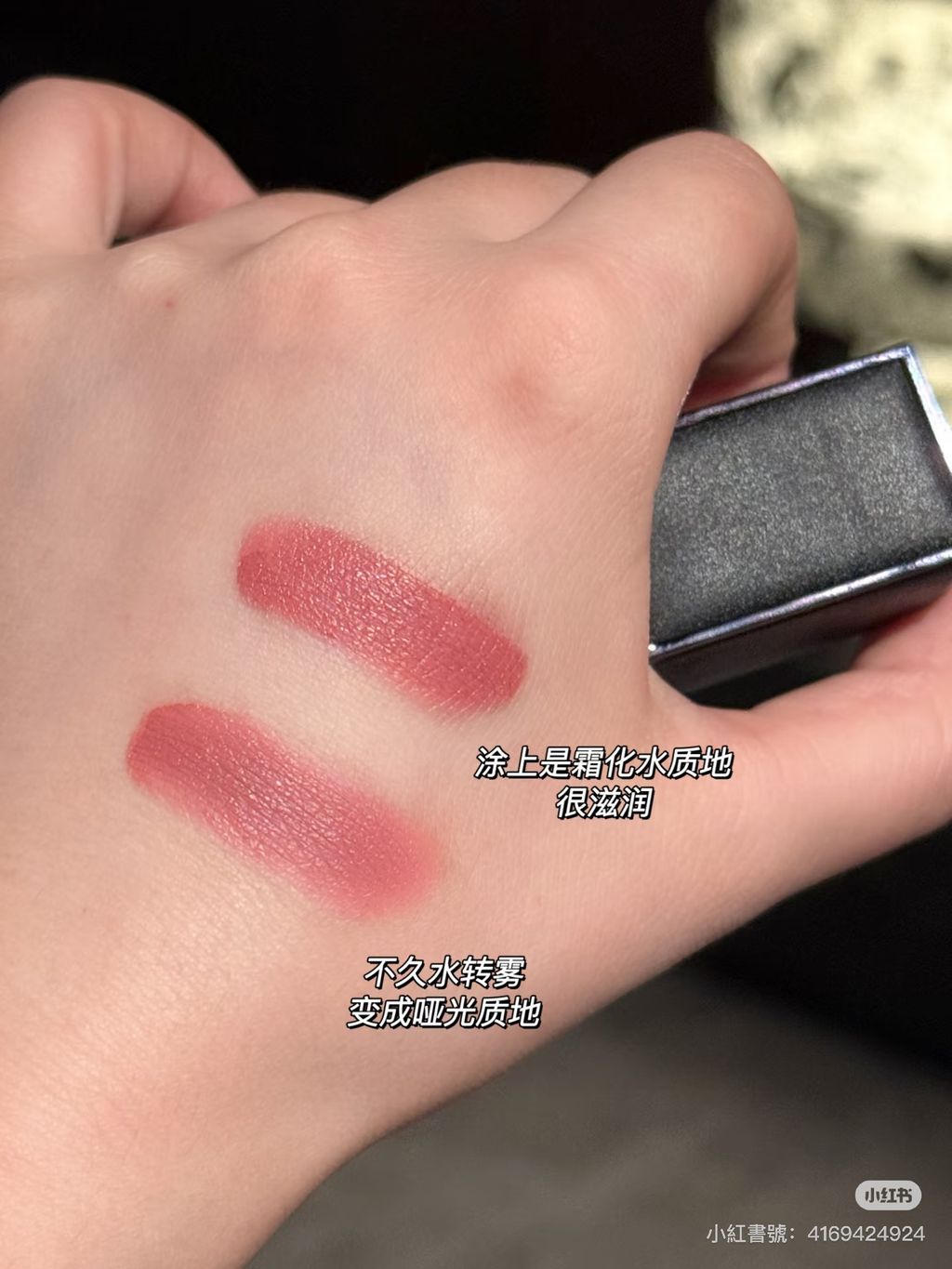 實際上唇的顏色會比手上試色再淡一些