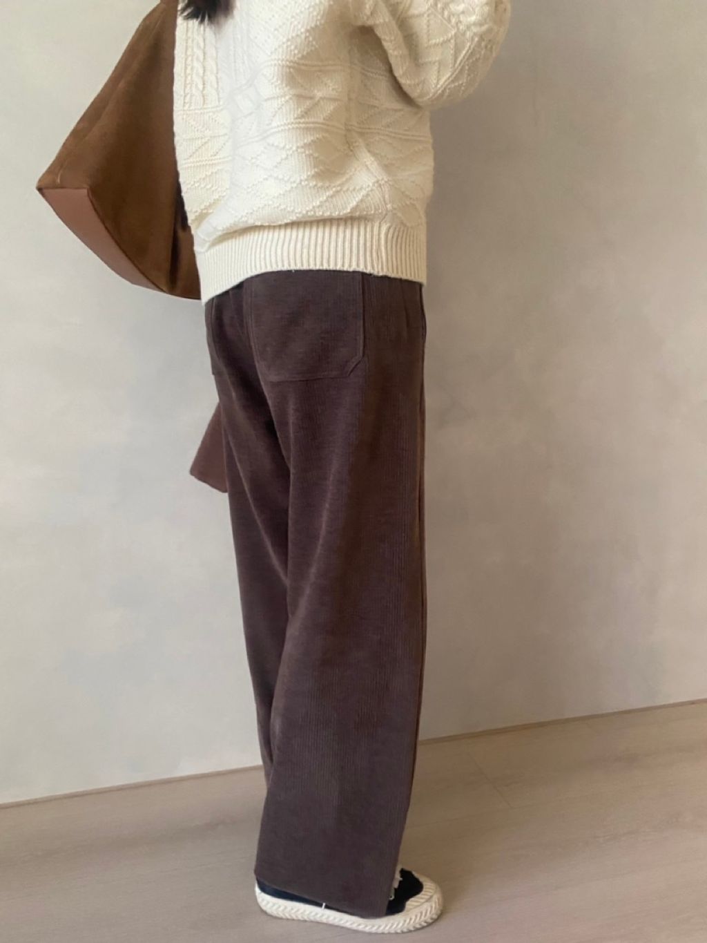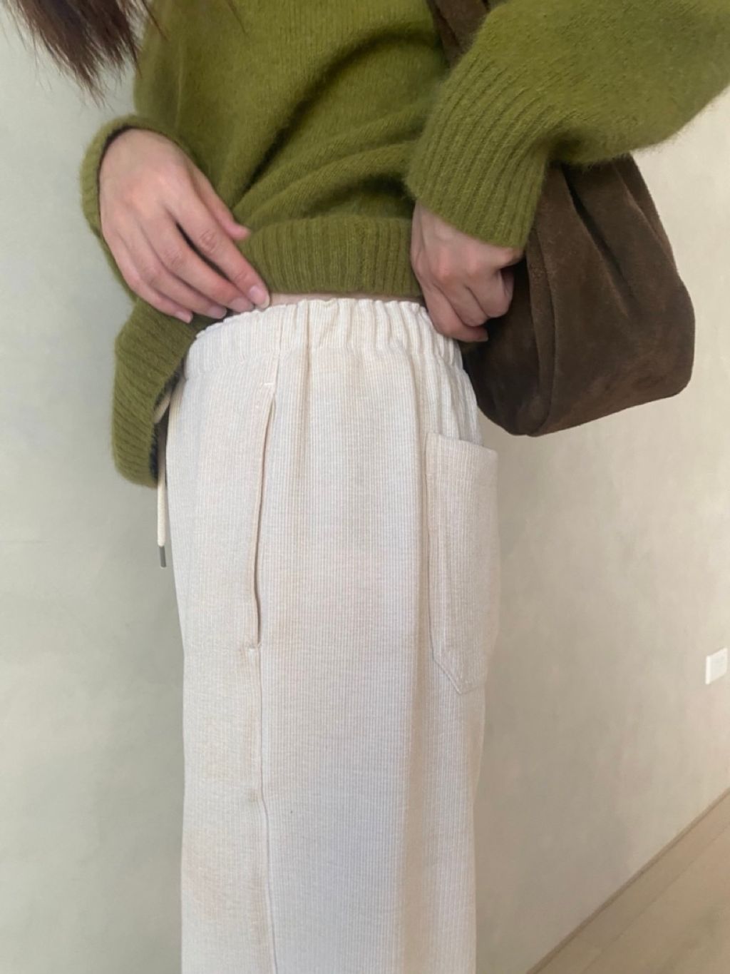 垂墜度極佳,搭配恰到好處的側邊剪裁,穿上後視覺上自然修飾腿型,顯腿直又顯瘦