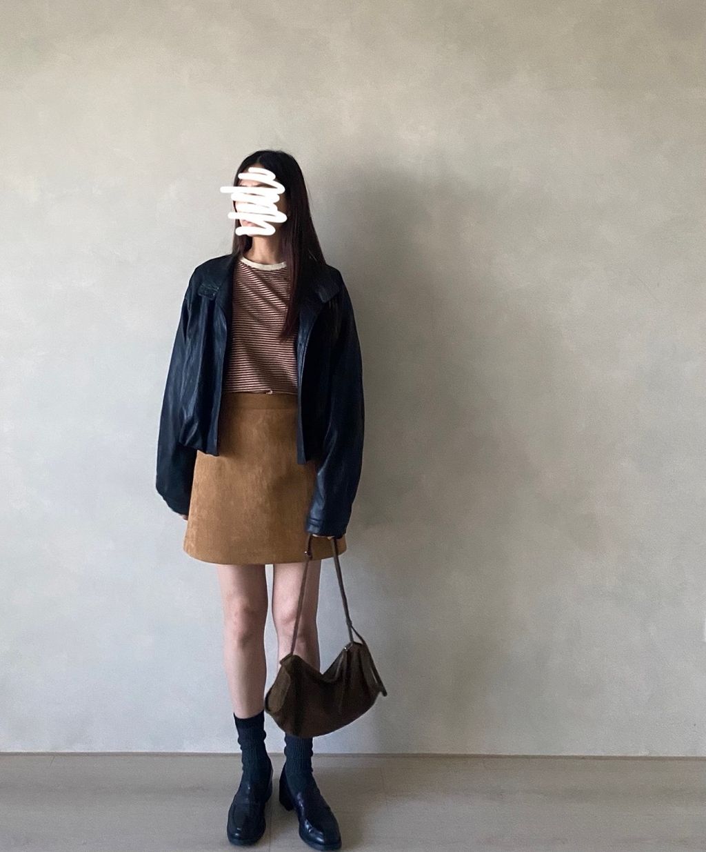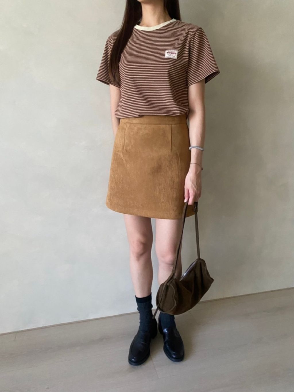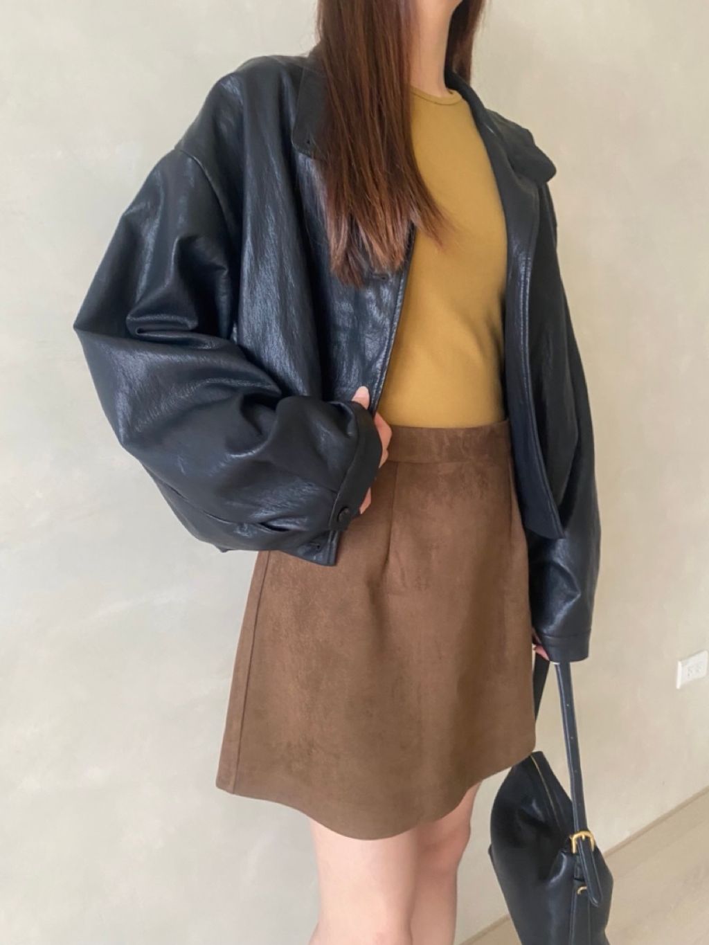 /兩色現貨/ 25NOV06 小皮標A字麂皮短裙