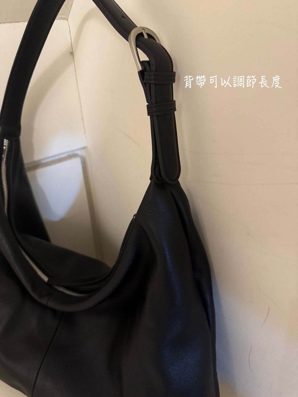 耐用且手感柔軟的牛皮材質,背起來包型自然且有垂墜感